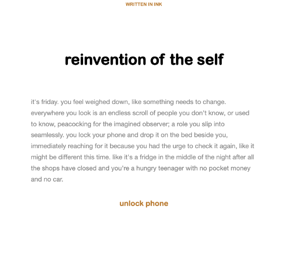 We also spoke to honor ash about their text, reinvention of the self. It’s written in ink, n the format means you have to click thru and reveal the next bit - interesting. We spoke to honor about whether the format worked better as a click thru game, or a pdf, and how it could be translated into spoken word. We’re excited to hear back about how their performance went!!