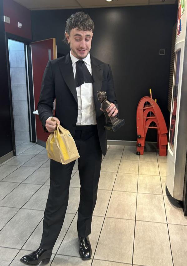 and here are some bonus pics of paul mescal at the olivier? awards? getting maccies? in his tux? gazing lovingly? at his lil trophy? so proud!? SO CUTE!?