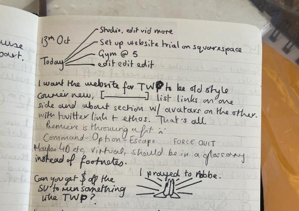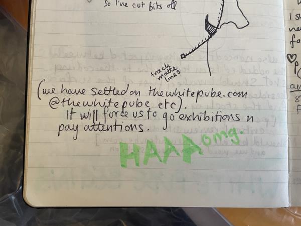 At some point in the past 7 years, I have found these notes and been in utter shock that The White Pube became my full time job, gratuitously circling this moment in neon green highlighter. This weekend, I just ripped the pages in question out of the journal and threw the rest in the recycling. I am precious about it but not that precious. And it might only matter to ZM + me anyway haha