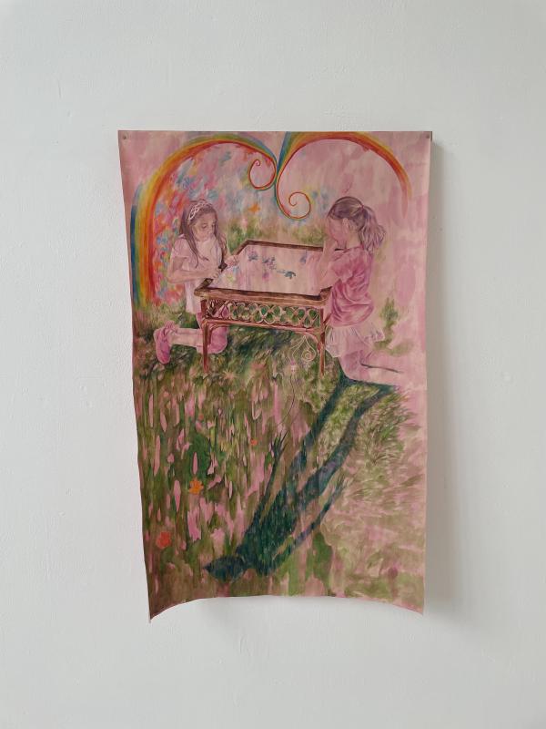 jess & melanie had their work spread out and spread over each other in a shared room, and they had their crit together, so – in my mind it’s hard to talk about one without the other bc i experienced them together and all tangled up. but as someone who has a Beloved Collaborator, i appreciated it!