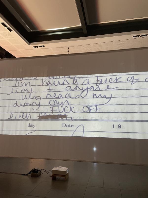 seren had a film in several acts – a work of autofiction, pulling things into a script from her personal childhood and family archive. iamges would flash up in handwriting, from a child’s diary, from a child’s perspective. writing that together as an adult making it all into a story but – that naivety was still there as a current under the surface, more than subject matter, it was part of the fabric of the work and it was sweet and sad and beautiful and difficult – i wanted to stay and watch it all through on my own in a dark room – i still do! i hope i see seren’s work again, somewhere and somehow because i want to give it my undivided attention, rather than talk over it in a crit. it was this tender thing, and muscular too. i loved what i saw.