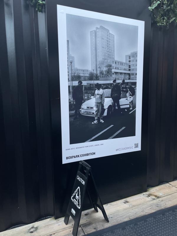 was havin a cig in those lil alleyways in boxpark (i fucking HATE poxpark, by the way – shitty gentrified neoliberal theme park for transplants and tourists who don’t know anywhere else to go in london, fuckin get rid of them, terrible places) and in between complaining to myself about being in a boxpark, i spied this pic of the Demon Boyz outside Broadwater Farm.
