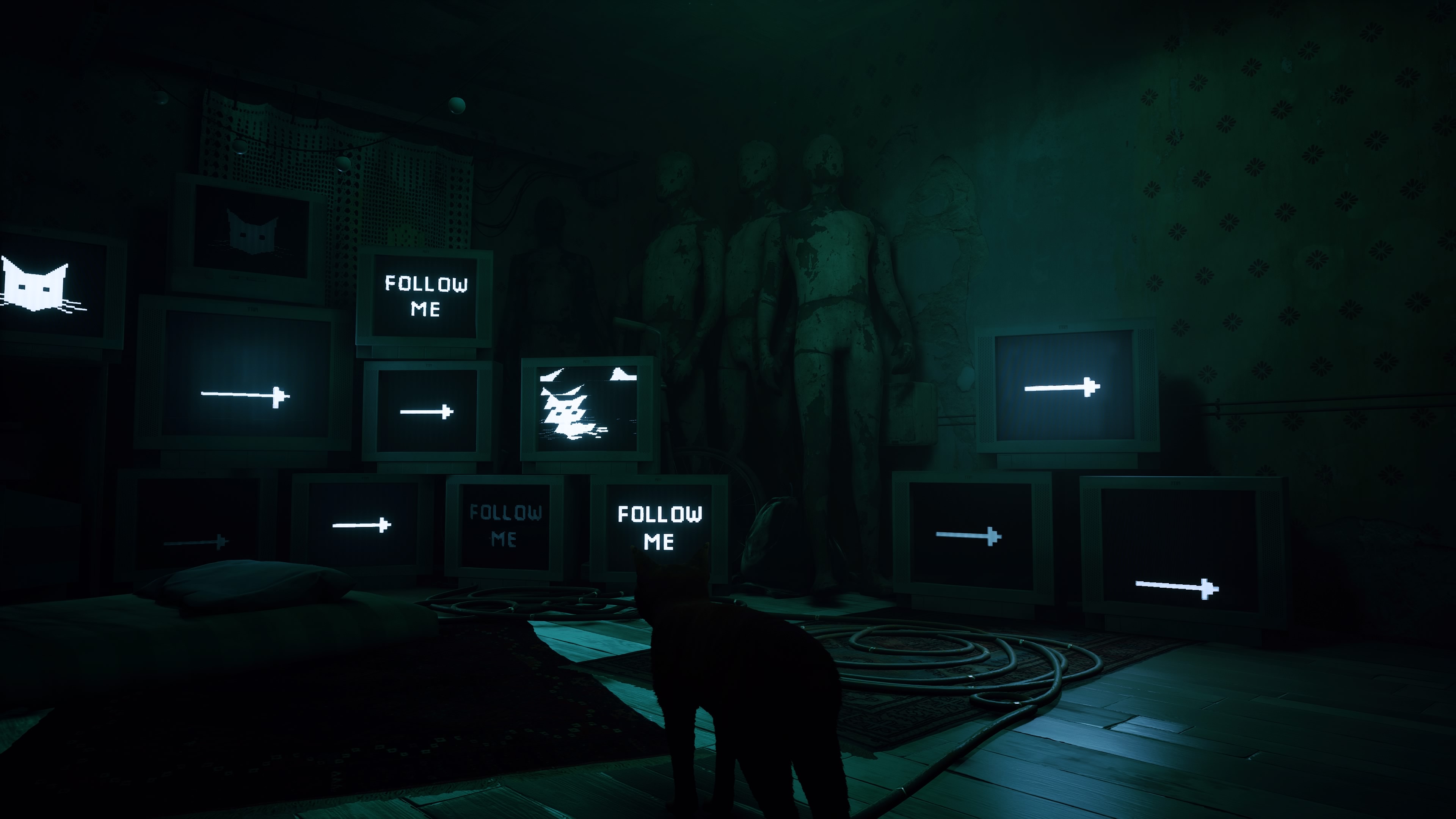 Yeah. I wish that the game design had been more expansive, more exploratory. I wish it had dropped me in those digital sewers and left me alone. I wish there hadnāt been one single route through the story. I wish that climbing to the very top of the walled city and escaping into the outside world had been a choice I didnāt know I could make. I wish that the game design had hidden itself so well that when things did happen, they felt like a surprise just for me. I wish the robots hadnāt spoken directly to me; I wish they had spoken to each other or to themselves in a language I couldnāt understand, and that I had intuited my way around using their tone, their body language, and the environment ā if I even wanted to. I wish that the cat in Stray could have really been a stray cat: a free entity, not an animal who got tasked with finding a blanket because a robot was cold and he wouldnāt fix my walkie-talkie until he got warm again. I donāt think cats should do that and I also donāt think robots should āget cold.ā I wish that my cat had eaten and played and had uncontrollable moments of Tokyo-drifting. I wish an entire chapter of this game hadnāt been set in a prison, bad vibes. I wish I could have been reunited with the cats from the beginning of the game but I never saw them again, even after I made my escape. That felt rude and hopeless.