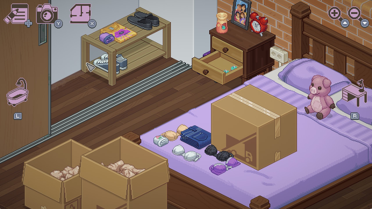 When something hovers like this, far enough away from strong love or strong hate, I find it easy to give a review because I can see what it did and didnāt do. I didnāt hate the game because the pixel art in isometric scenes was tight and charming. I didnāt hate the game because I like tidying up, and each puzzle was a polite length that fit comfortably into my day. It was also mildly interesting to gather information about the protagonist through the items in their life and how the placement of those items changed depending on where they were living. The answers to the puzzles allowed us to just about glean their personality and even the reasons one relationship worked out while another did not.