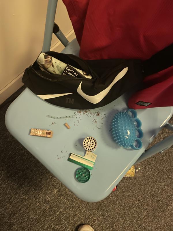 I hurried back to the keypad and typed in the code, heard the lock click. The door swung open, revealing a drab staff room. Everything from the static flat carpets, the magnolia walls and that smell. In the middle of the room: black plastic crate stacked in a makeshift table, a monitor and an xbox controller. In the corner, a fold out chair with a red 90s England away shirt draped over the back. There was a black Nike bumbag, with rizlas, baccy, a loose rolled roach and a green grinder. Rolling across the floor, an unopened bottle of wray & nephew. I parked myself in the office chair and picked up the controller. The holding screen was calm, two hands held out in front with the palms facing away. Two blue hearts glowing at the knuckle on each hand, between ring finger and little finger. Press A to begin.