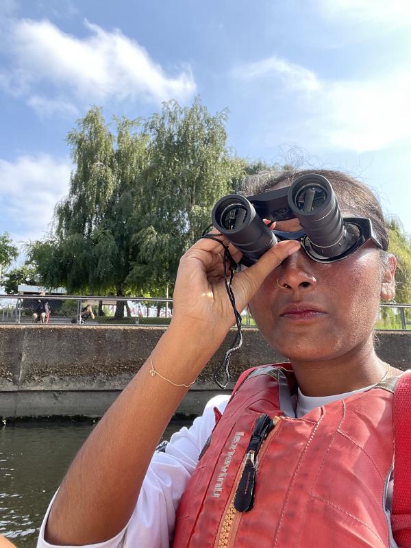 I joined a crowd of 40 strangers outside the tube station. We walked over the sun baked shopping centre tiles, towards the water. Standing on the jetty, a man handed me a lifejacket and a pair of binoculars in a fabric case. The scene gave me deja vu. Not a feeling or a sense that grew within me, I was given it. It hit me hard. I have dreamed this already, I thought, I am sure. I looked out at the water, looked out at the 10 swan pedaloes bobbing by the dock. I looked at the strangers clambering aboard them, in their lifejackets, with their binoculars in hand. I looked down at myself, at the binoculars slung around my neck. If Iâd had a dream like this, surely Iâd remember it? Surely itâd be vivid? This felt very vivid. A man wearing a polo shirt and petrol station sunglasses took my hand and helped me into a pedalo (swan no. 6). I somehow found myself in the driversâ seat next to a man called Simon. Simon winked, saluted, said aye aye captain. We pushed off from the dock and pedalled round in a big loose circle, my hand clenched on the steering stick. A lamentation of swans, yes. Crowd of strangers dissolved into a we.
