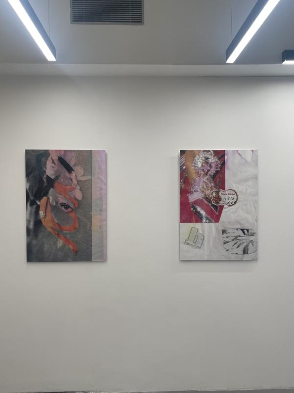 Some images are private, some are public. Some are revered, some are circulated, some are put to use — but is the reverence private or public? Is the reverence a savouring sentimentality? Or is it highbrow, universal, in relation to the grand canon of art history? In this context (a commercial gallery full of contemporary art) the postcard in the courtyard is both. The artists are using found images, found objects, found materials — stuff that speaks to this private sentimental reverence — they blow it up to make it palpable, cartoonish, inescapable. It is recreating the thing from within, conditioning it into something that feels like contemporary art (that monumental god), but isn’t entirely. Maybe half and half. Half contemporary art, half carpet, half tile. Half monument to the small image spirits that live on the surface of every family fridge. A shrine for the shared image language of Gujurati aunties in Harrow.