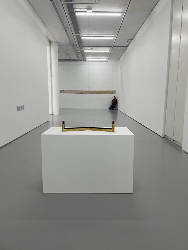 Yes, I, a humble vagabond. I roam where I please, free from the gallery’s complex feudal system. I am tied to no lord, no land. Like Esau, I belong to the wilderness, untamed. Some would see that as a misfortune! I cannot imagine it being anything other than a blessing. Sitting here in my corner of the gallery, watching, waiting, contemplating — I cannot shift from my mind the thought that even if this work went to auction, even if it were to be sold, would it not become a burden to another? Yes, yes, I did not find myself in this job for nothing. I received a vision of my own. It came to me while I lay low in this corner. It came to me, resplendent, magnificent! Under the cloak of darkness I stole into the secret place, happened upon the keys to the chests. The tape lifted and I beheld the treasure within, was near blinded by the horror of it! A fiery forge melted the silver, my own arms hammered and struck it into a new shape. Yes! When the exhibition closed, the curators opened the chest, and they came to find it empty. They found themselves free! Many secrets were revealed to me, secret shapes, secret knowledges. A voice in this mystical vision told me that the artists made this exhibition for a purpose higher than that of standard exhibition and display! Look closely. It is a map. The silver, the stone, the panel. Treasures, burdens, chains — a forge waits for them all! Well… It is but a vision… A joke, you see! I am only the invigilator, one who comes and goes as he pleases. But maybe…